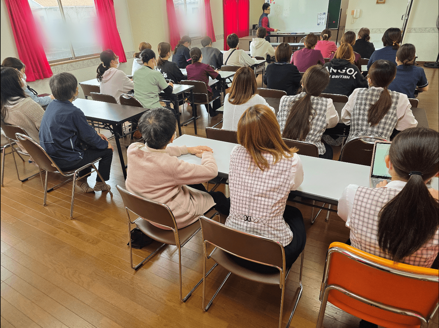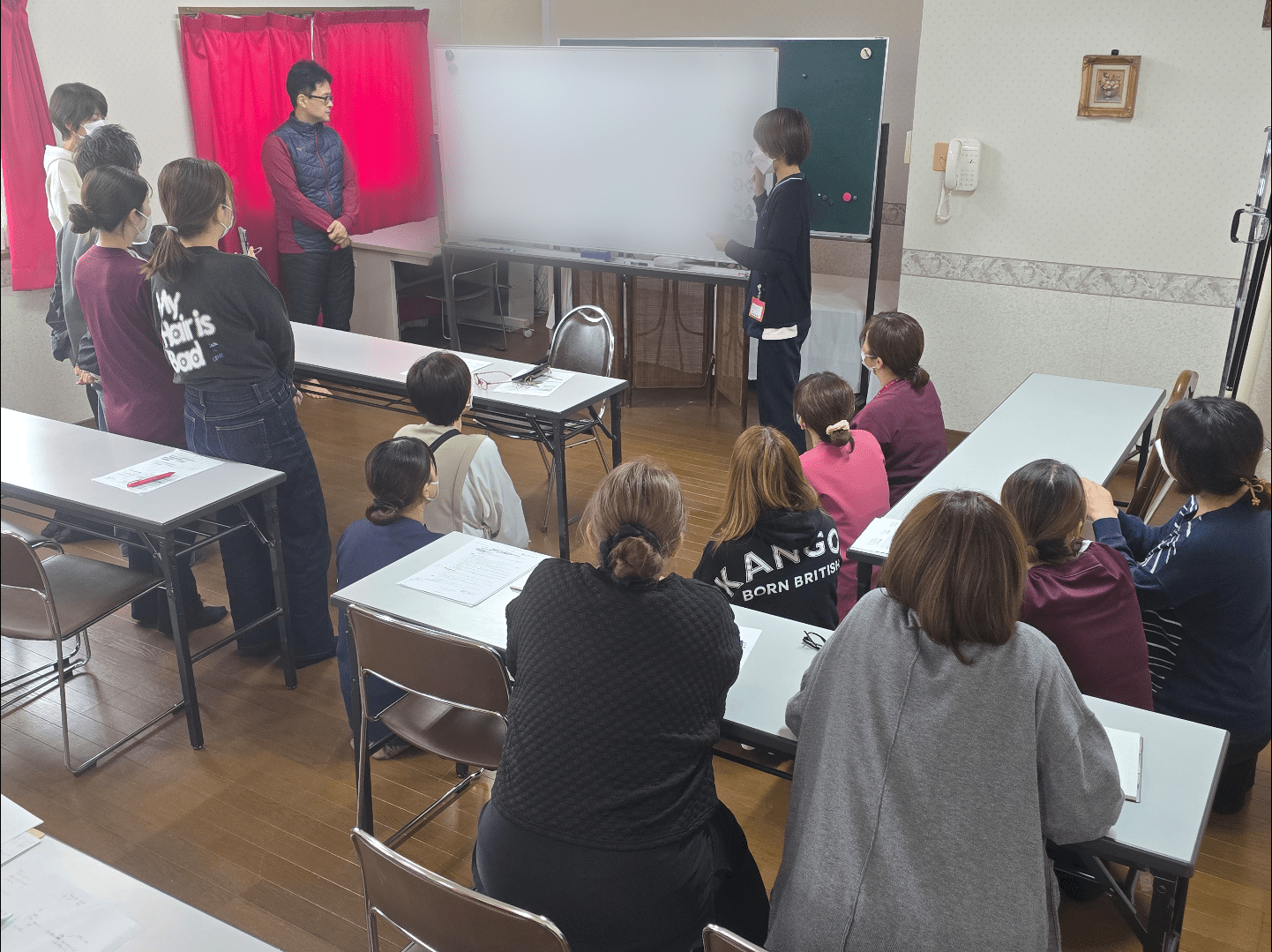 全体会では、日々の業務の確認や注意事項・感染対策等を話し合い、報告・注意し合いました。